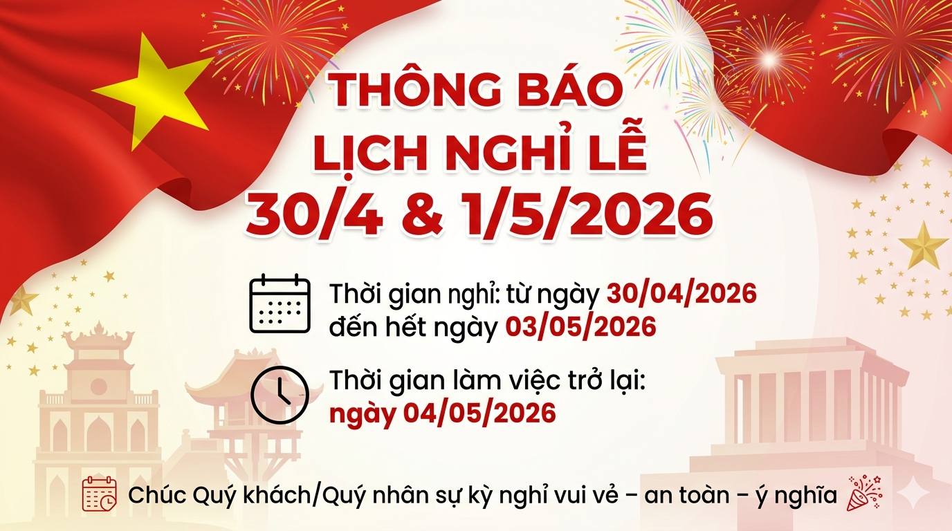 Thông báo về kì nghĩ lễ Giỗ tổ Hùng Vương 10/3 Âm lịch và Ngày Giải Phóng Miền Nam,Quốc tế lap động 30/4-1/5